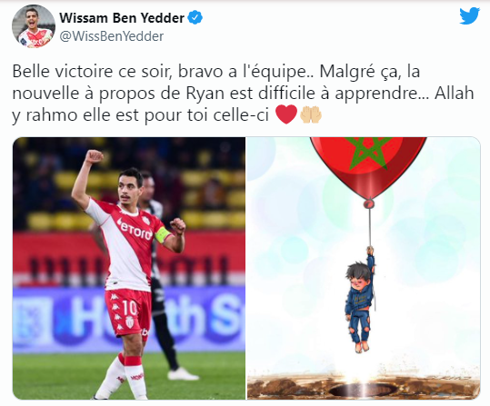 « Belle victoire ce soir, bravo à l’équipe.. Malgré ça, la nouvelle à propos de Ryan est difficile à apprendre… Allah y rahmo elle est pour toi celle-ci », a-t-il écrit sur son compte twitter.